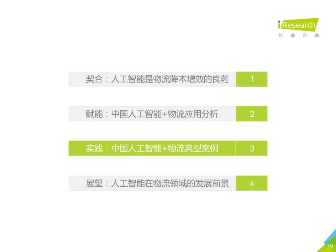 报告对“人工智能+物流”的研究范围主要集中在物流活动中的运输、仓储、配送及客服四个环节,分析研究人工智能技术及产品在上述物流作业流程中的应用情况及效果。