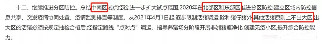去年5月,农业农村部发布《非洲猪瘟防控强化措施指引》,表示从2021年4月1日起,逐步限制活猪调运,除种猪仔猪外,其他活猪原则上不出大区,出大区的活猪必须按规定抽检合格后,经指定路线“点对点”调运。