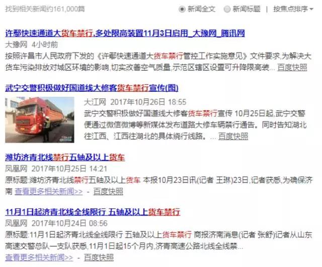 我们搜索「货车禁行」的相关新闻,竟然有16万条之多。